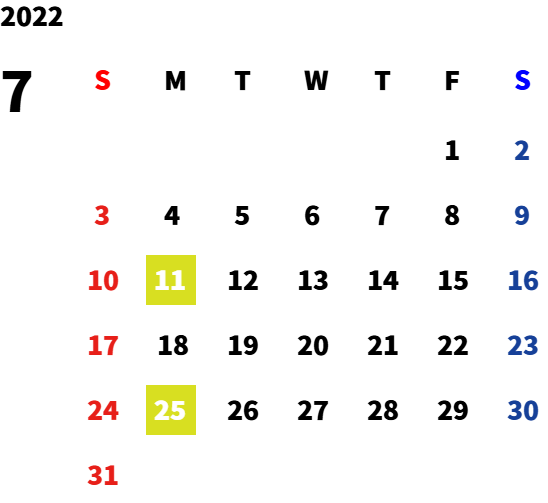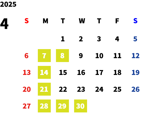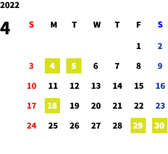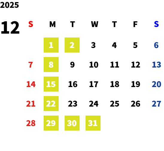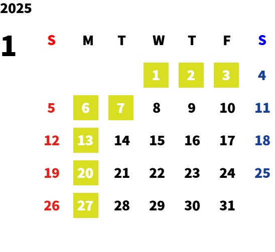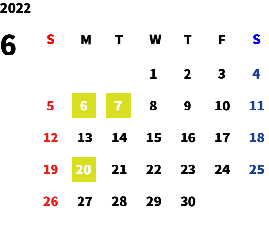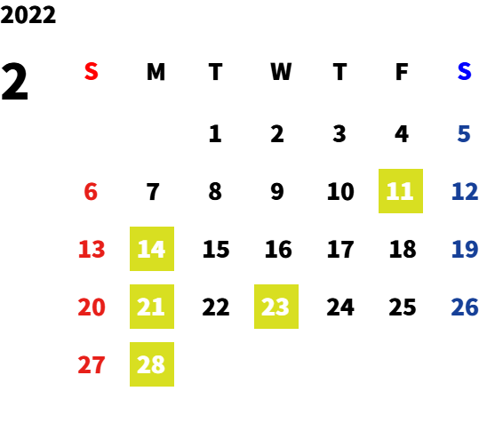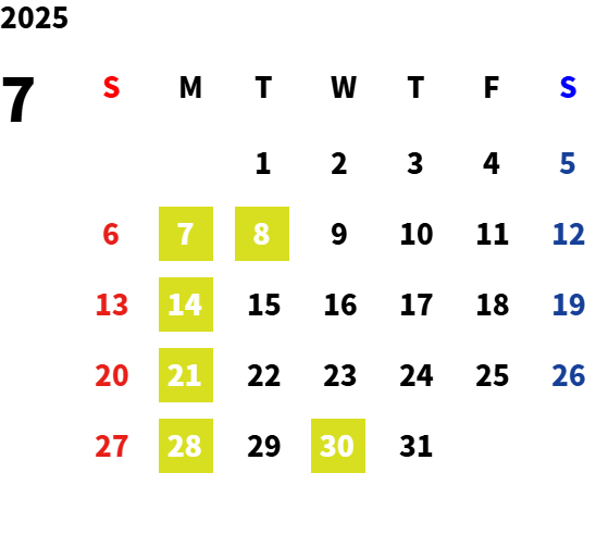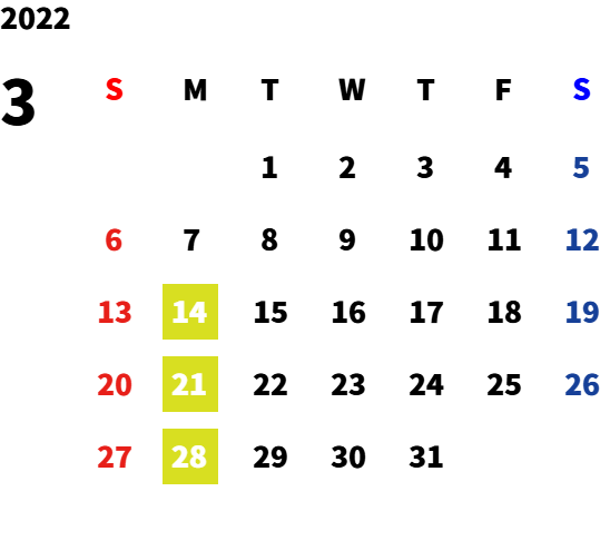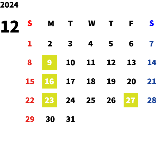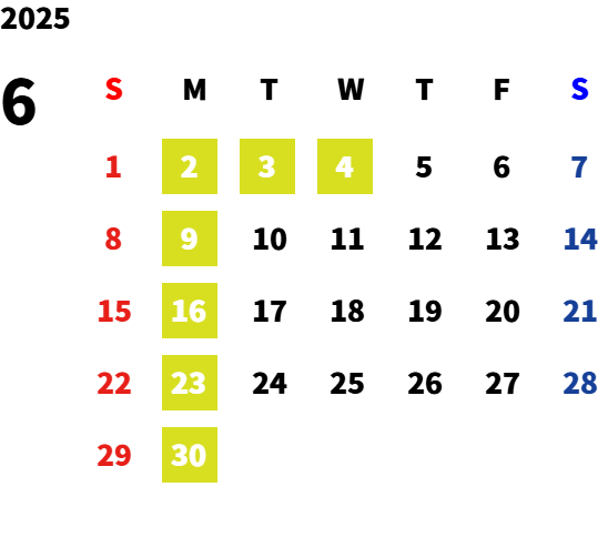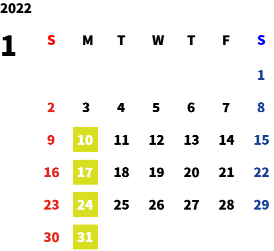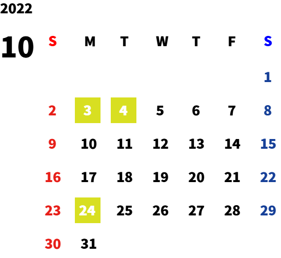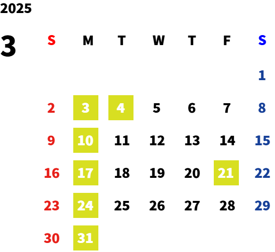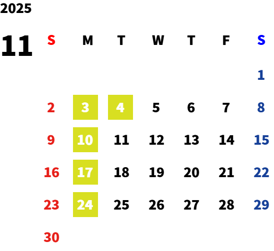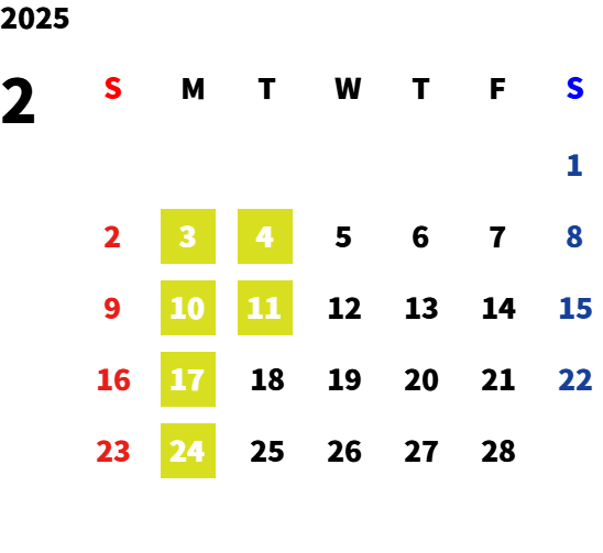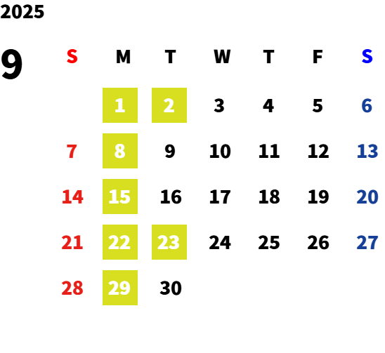 毎週月曜日・第一火曜日