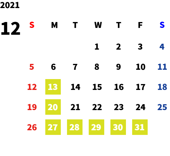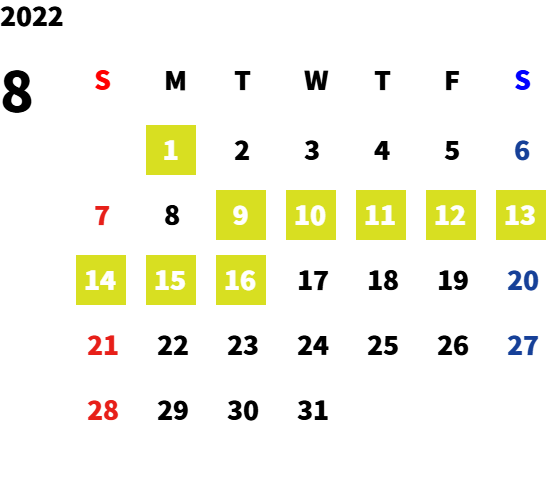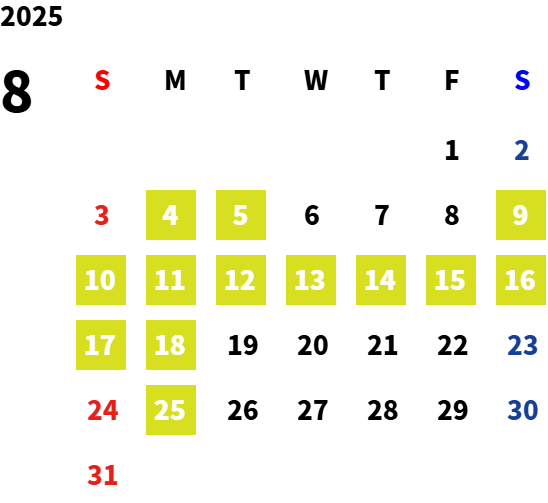営業日カレンダー